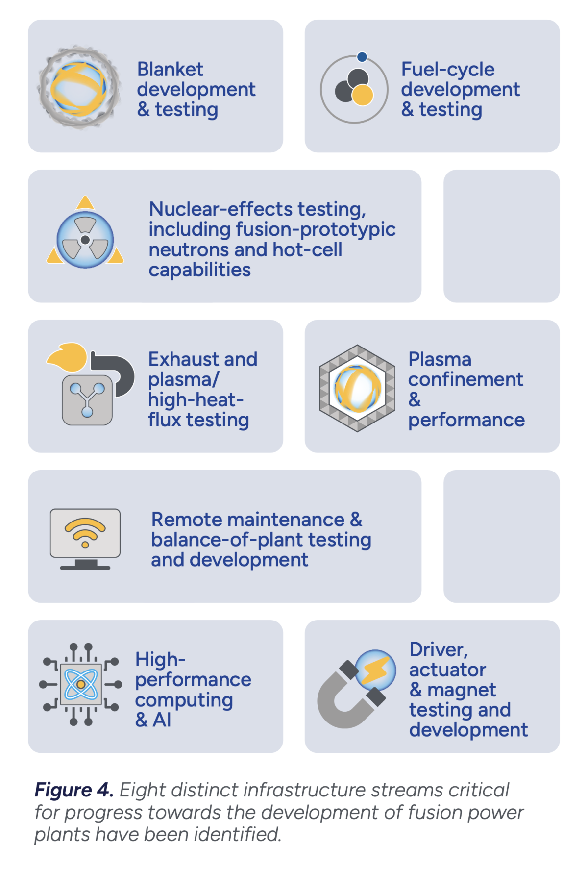 Qui la roadmap diventa quasi un manuale operativo. La priorità è lo sviluppo di infrastrutture dedicate a testare materiali e componenti sotto condizioni estreme: neutroni ad alta intensità, flussi termici elevatissimi, reazioni chimiche accelerate. L’Exhaust, Plasma and High-Heat Flux Infrastructure (come il laboratorio MPEX di Oak Ridge) è menzionato tra i principali strumenti per studiare erosione, gas implantati e morfologia superficiale dei materiali a contatto con il plasma.