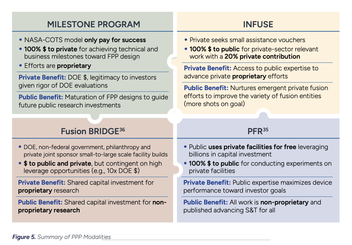 - Milestone-Based Fusion Development Program: programma del DOE che finanzia aziende private secondo il raggiungimento di obiettivi tecnici e commerciali definiti, sul modello NASA-COTS.